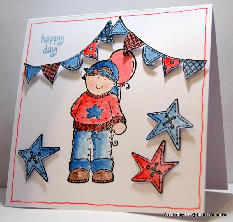I think this little chap is very dapper in his blue jeans and red jumper! The stamps are by Molly Bloom, one of the best freebies with a mag in a while.