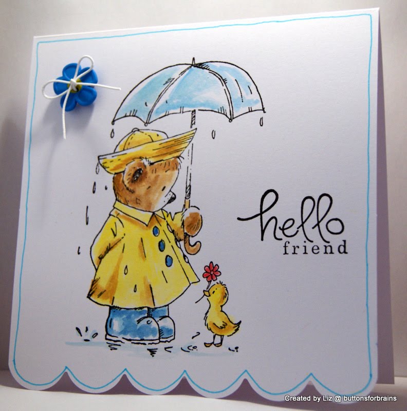 I have used a Penny Black slapstick stamp 'sunshine in the rain' and coloured with watercolour pencils.