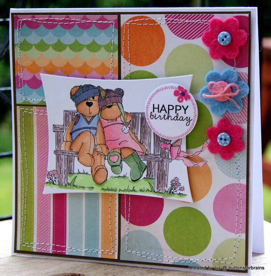 Hi Liz, what a gorgeous card. I love the sweet image and your papers are stunning. Thanks for joining in our 3rd birthday challenge over at cupcake craft challenge. Hugs, Denise x