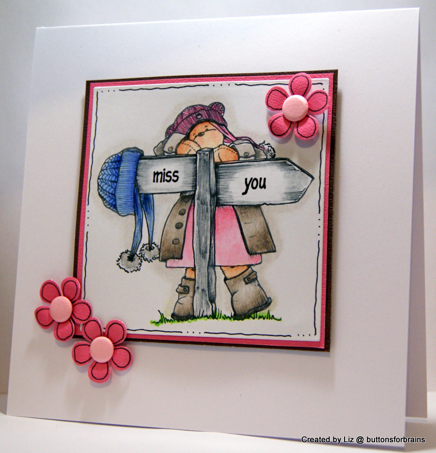 This week the challenge over on Teddy Bo is clean and simple so I have done just that. I stamped the sentiment on the sign post after I had done all the colouring, a nervous few seconds, but I managed not to smudge.