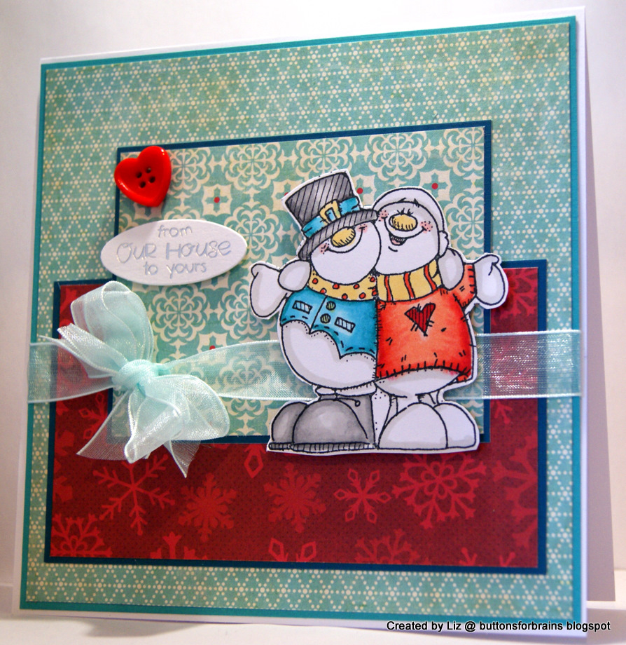 Hi Liz, fab card as usual. Love the snow couple and your choice of papers. The heart button is a perfect finishing touch. xx