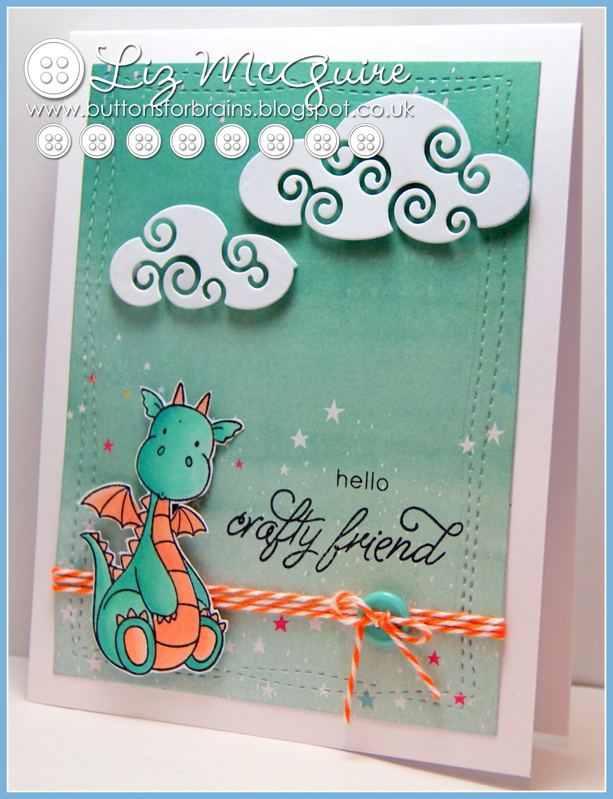 Oh super card Liz...love your happy dragon, adore those clouds...and of course all co-ordinated perfectly. Hugs xx