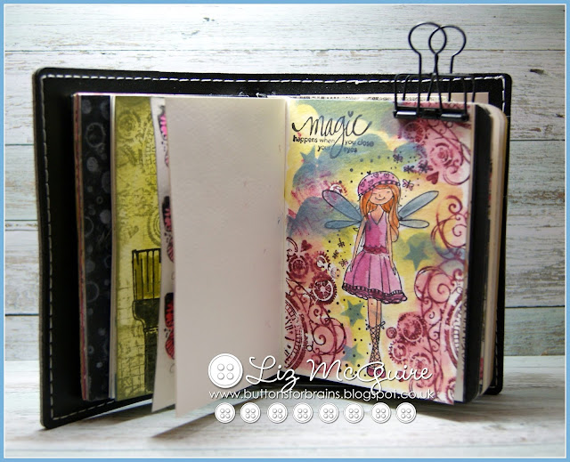 Hello. I'm back in the crafty room after a wee break. I didn't really plan it, it just sort of happened! To ease myself back I've had a quick play in my passport size art journal. I love the size of these pages, just big enough to stamp, colour and do a quick background.