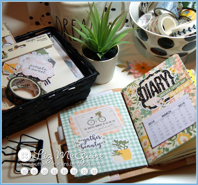 Inside I have three notebooks and a dashboard/folder. I have used paper, stickers, a packet of bits & pieces and washi tape all from the Spring Farmhouse collection by Simple Stories. The collection is available over at Paper, Pen and Plan.