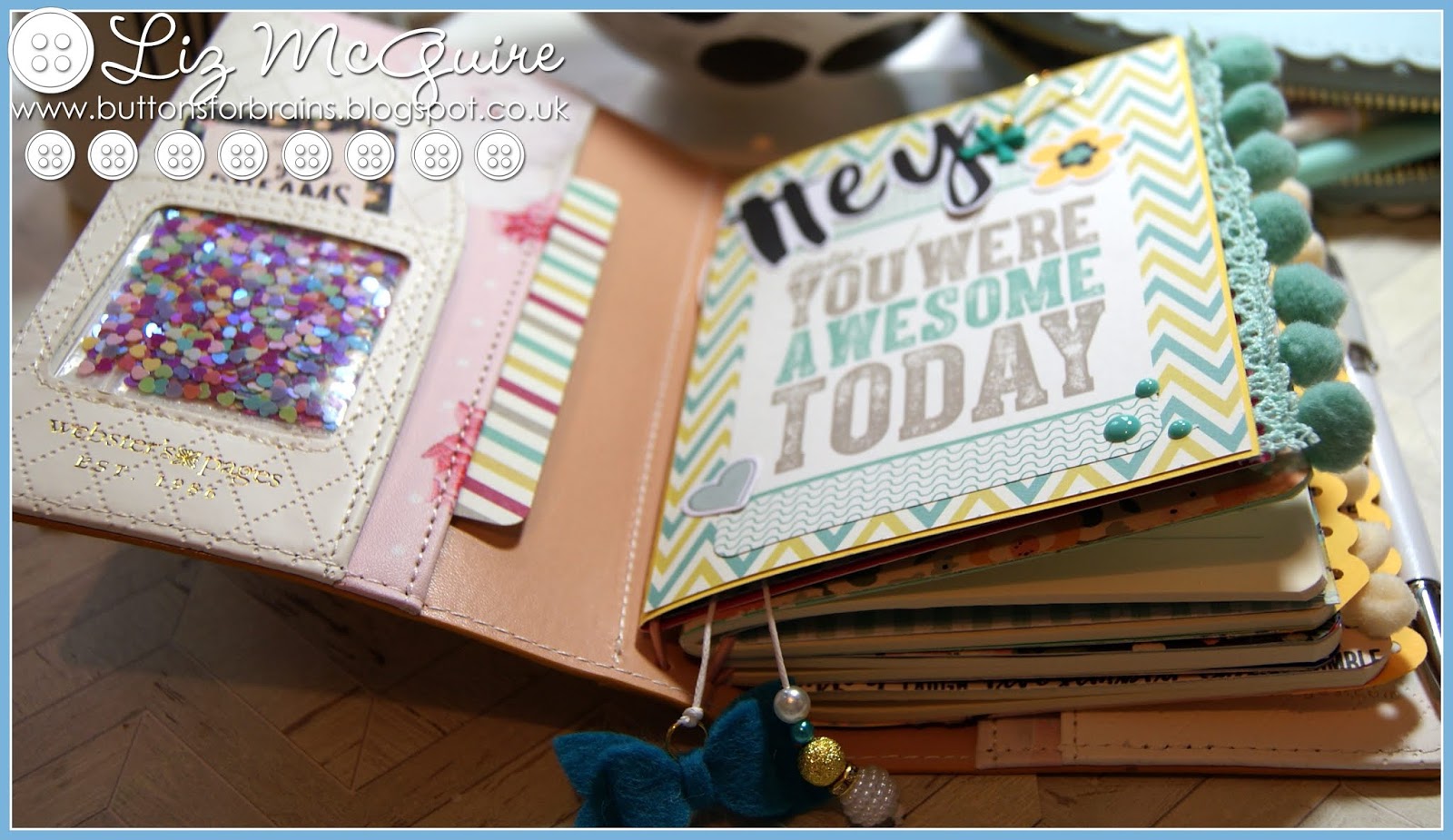 I made a shaker pocket with the tiny sequins for the inside pocket and added ephemera and acrylic dots, all were in the box.