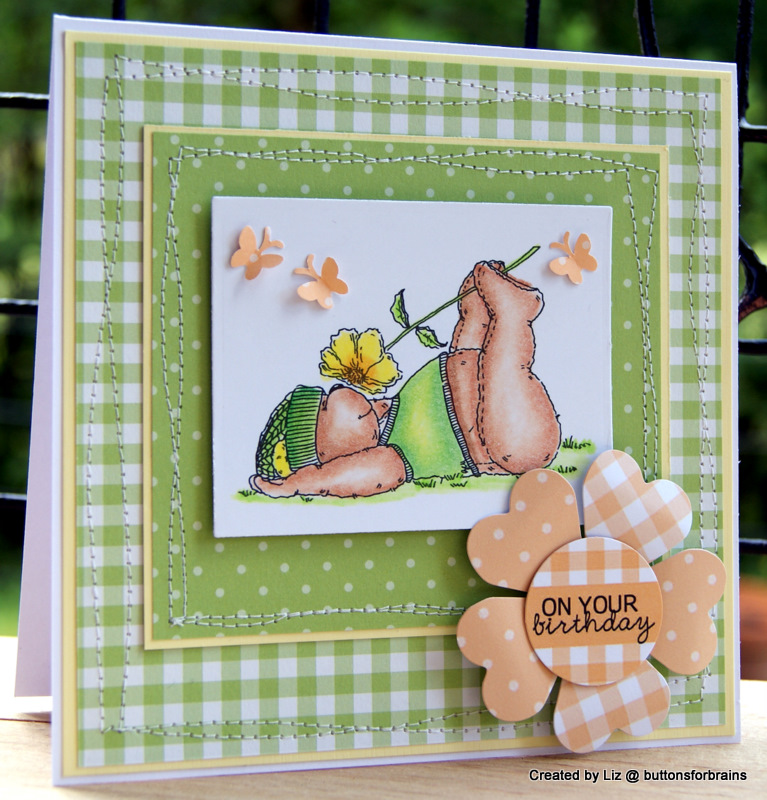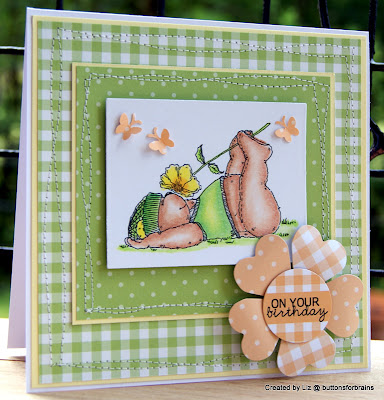 I think he is cute enough to be entered into the Teddy Bo Challenge....shaped cards.