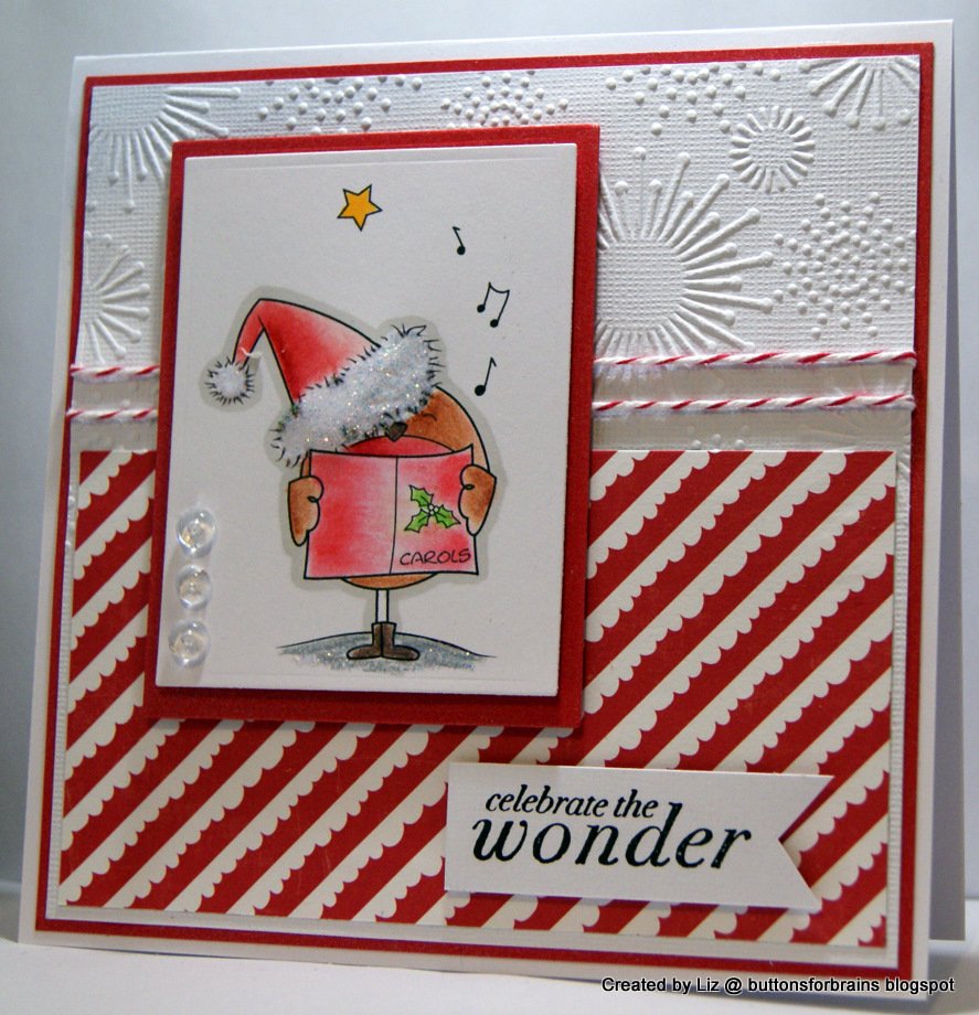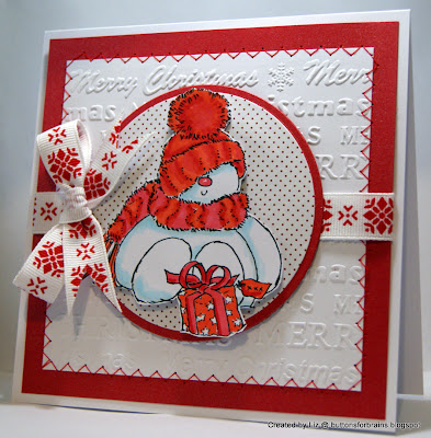 This week it's.... Red + EmbossingI used a PB slapstick stamp 'sweet snowman' and coloured with copics/promarkers. The embossing folder is from the cherished teddies range.