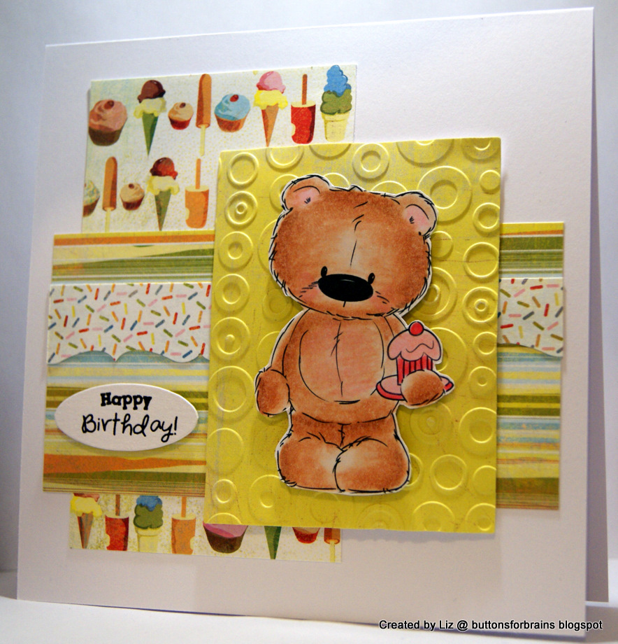 So, today I have a stepper card to share, quite like how it turned out. The image is TeddyBea077 and I coloured with prisma pencils. The papers are Echo Park.