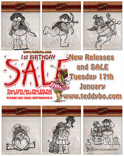 It's Tuesday and that means there's new bears available over in the TeddyBo shop. I have used TeddyBo 164 and coloured with prisma pencils. The papers are 'travel light' which came free with a magazine recently. Remember there's still a few days left to enter the birthstone challenge to win some images.Monday, 2 January 2012