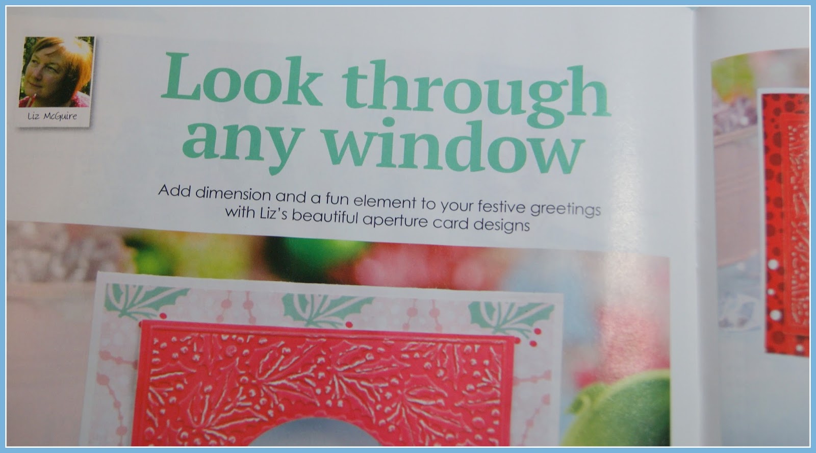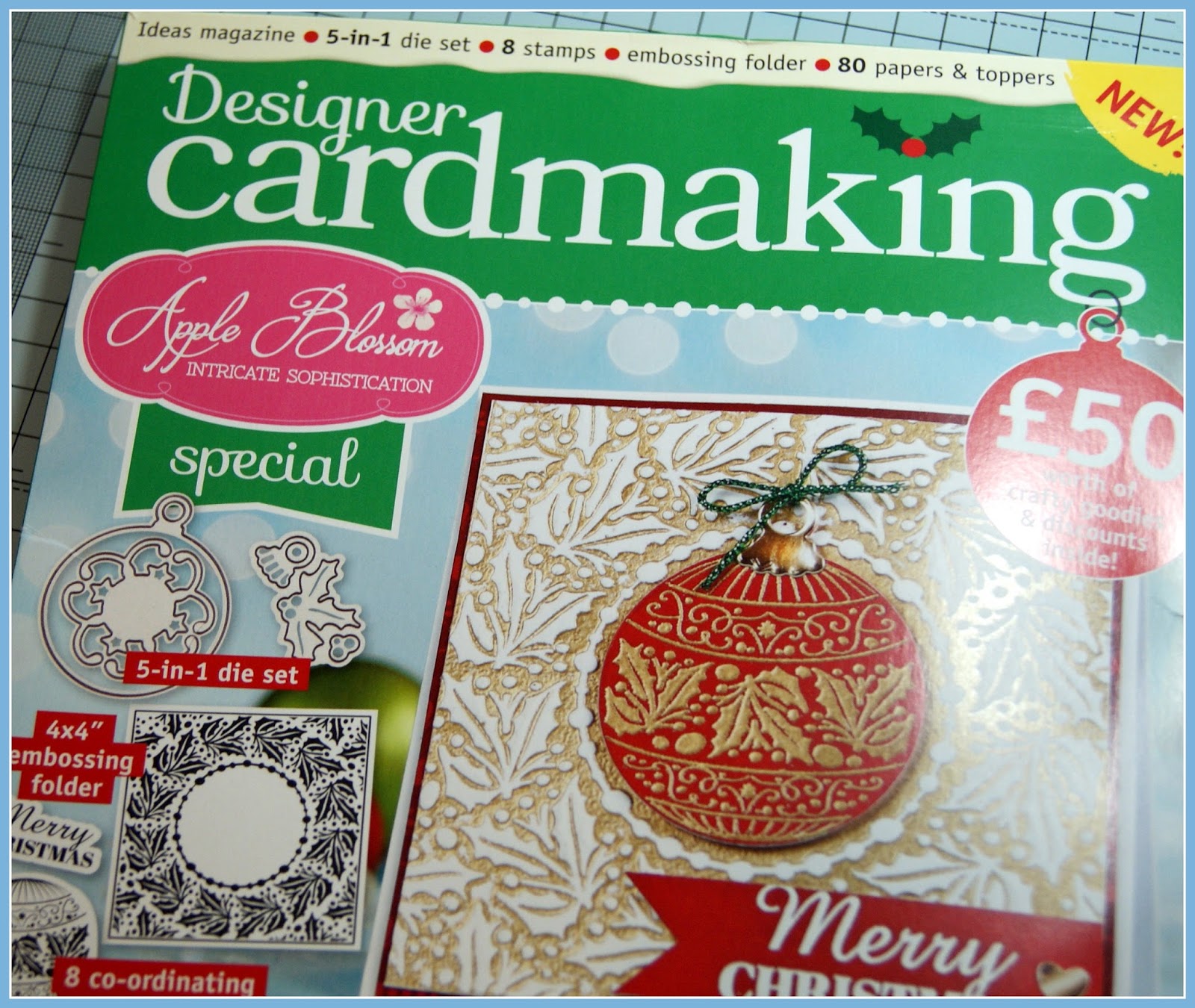Hello. I just thought I should let you know about a brilliant new magazine that's on the shelves now. Designer Cardmaking is chock full of ideas for the cardmakers busiest time of year - Christmas! I have an article on creating apertures. I got to use all the free gifts that come with the mag'. How lucky am I?