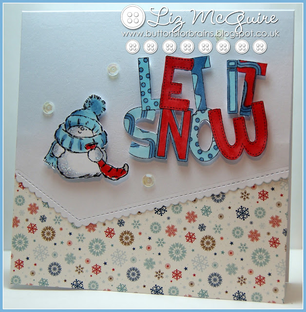 Hello. The other month I blogged about a card I had made 8 years ago, read the post here. Well, my blogging buddy Carole threw down a challenge - show us what you would do with Snowy now! So here we are with an up to date version.