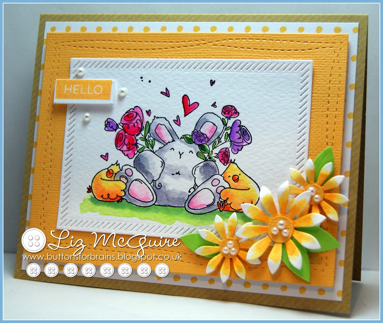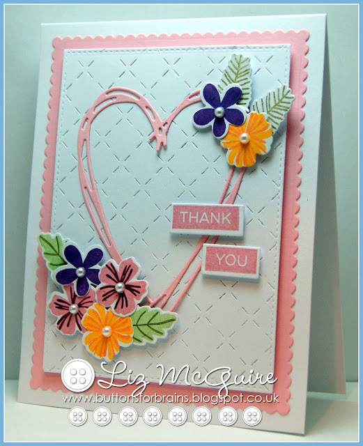 Hello. I have a sweet little thank you card to share today. I used stamps and dies from Lil'inker Designs called 'sweet celebration'. The flowers were stamped using Versamagic chalk inks and cut out using the co-ordinating dies.
