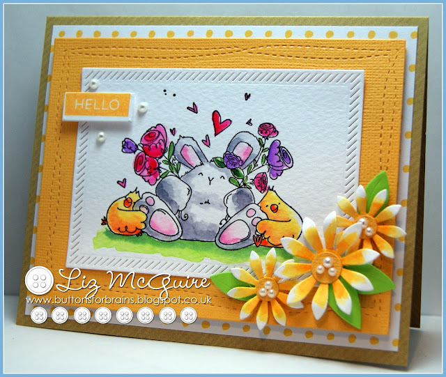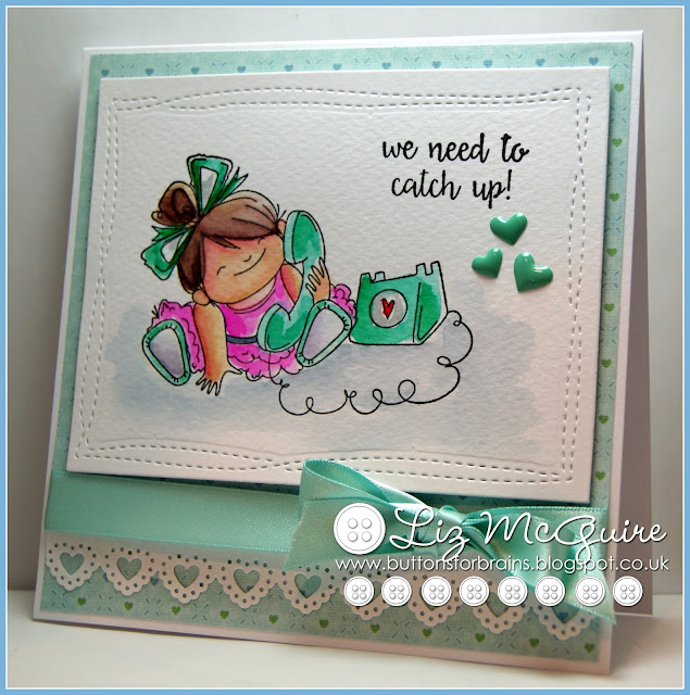 Hello. I have often been tempted by Stampingbella stamps but have never taken the plunge! Well, that ended a few weeks ago when this little cutie somehow fell into my basket (along with another, but more of that some other day). She's called 'Chatty Squidgy' and I coloured using my ZIG pens - still lovin' them!