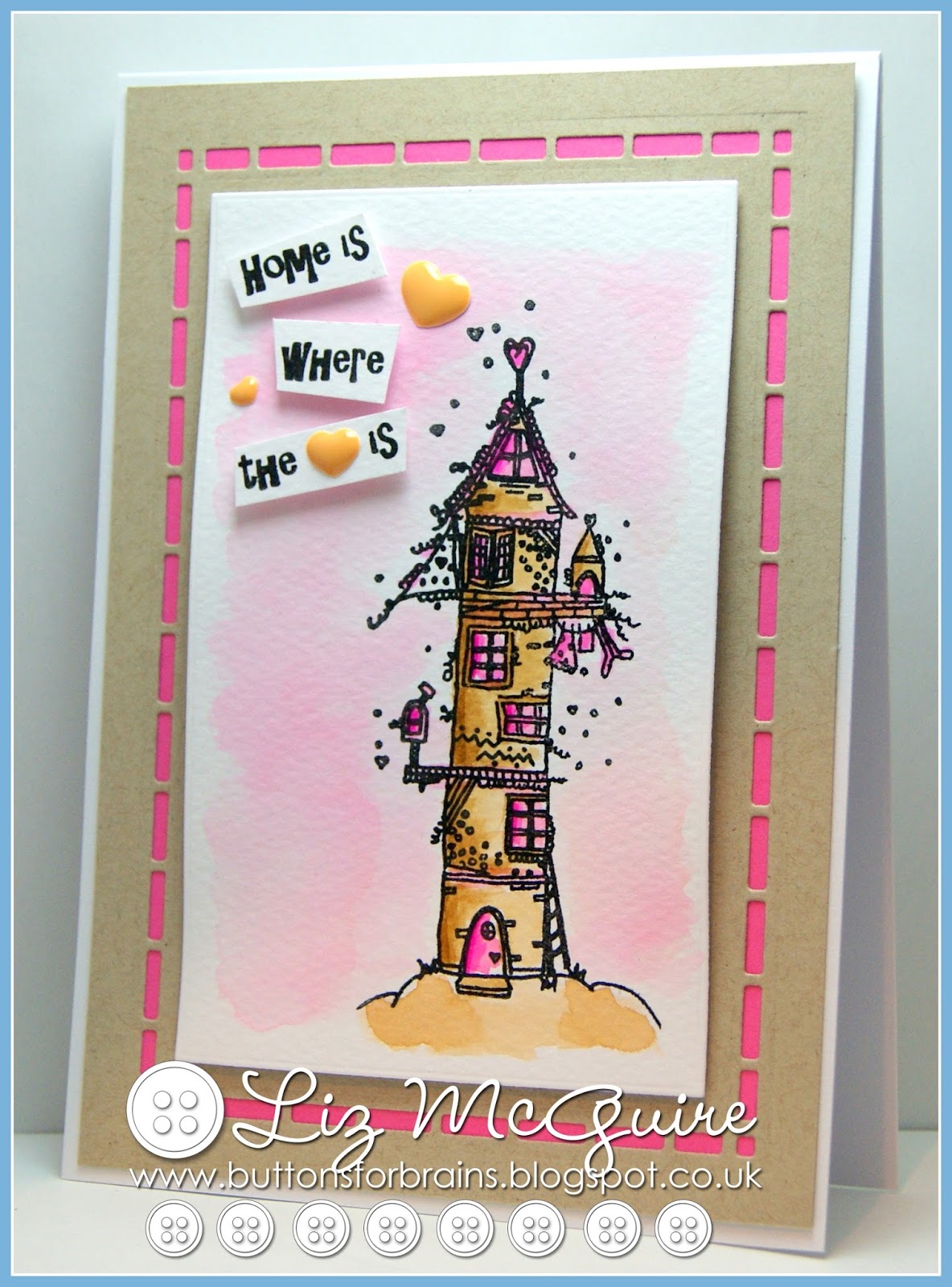 Hello. Who lives in a house like this? Wish it was me, how cool would that be? The stamp is from the Wonky Tonk Town collection by Which Craft and it's called 'home is where the heart is'.